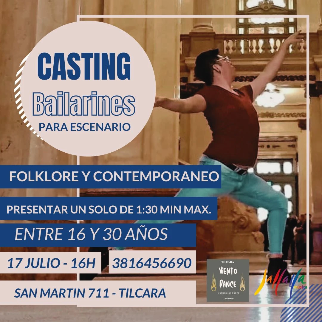 Se abre la convocatoria para bailarines de folklore y contemporáneo, de entre 16 y 30 años, para formar parte de nuestro equipo de eventos en Tilcara, Jujuy.