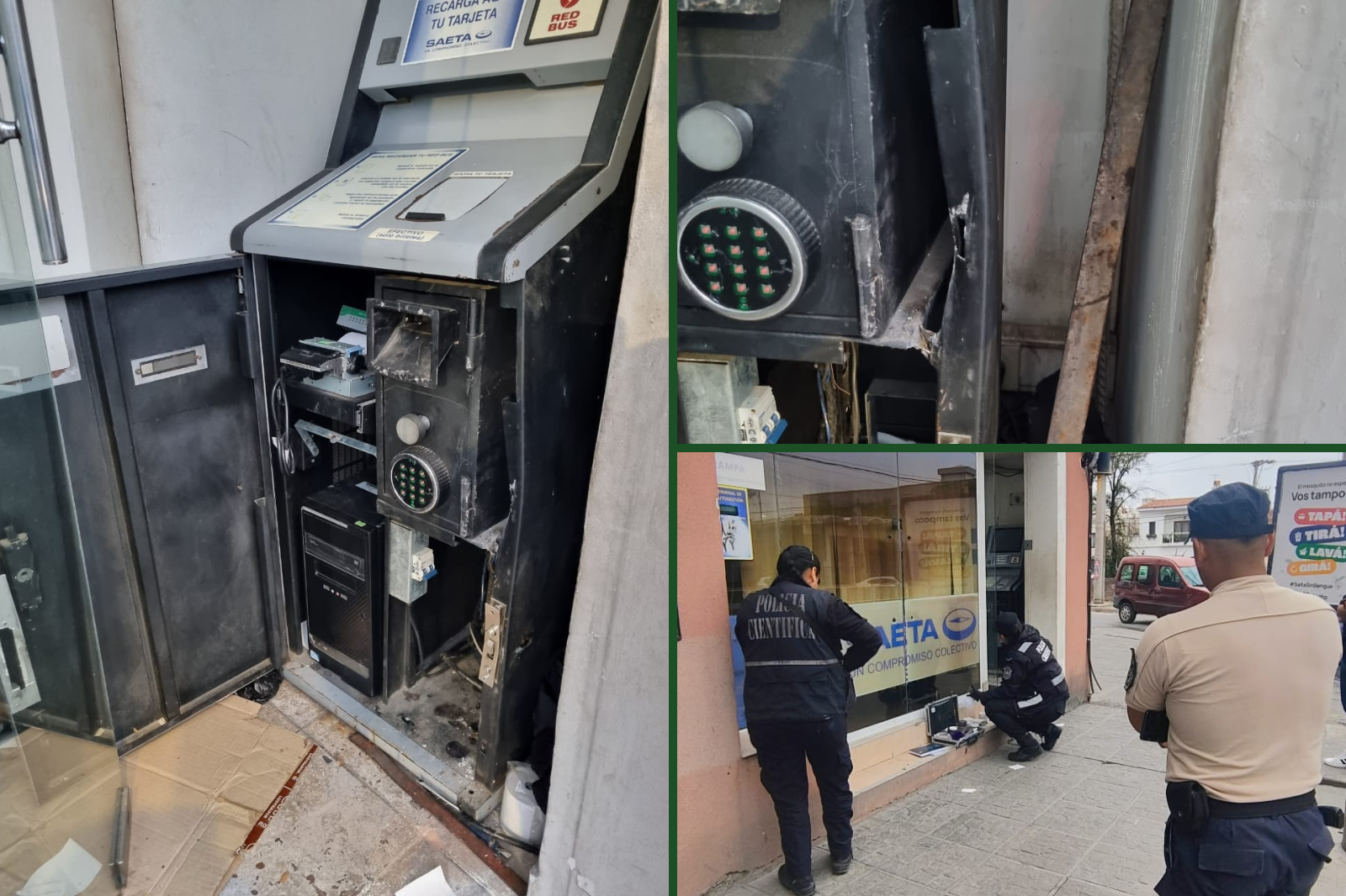 Representantes de SAETA radicaron la denuncia policial y personal de la Policía Científica trabajó en el lugar para relevar huellas y analizar los elementos dejados junto a la máquina.